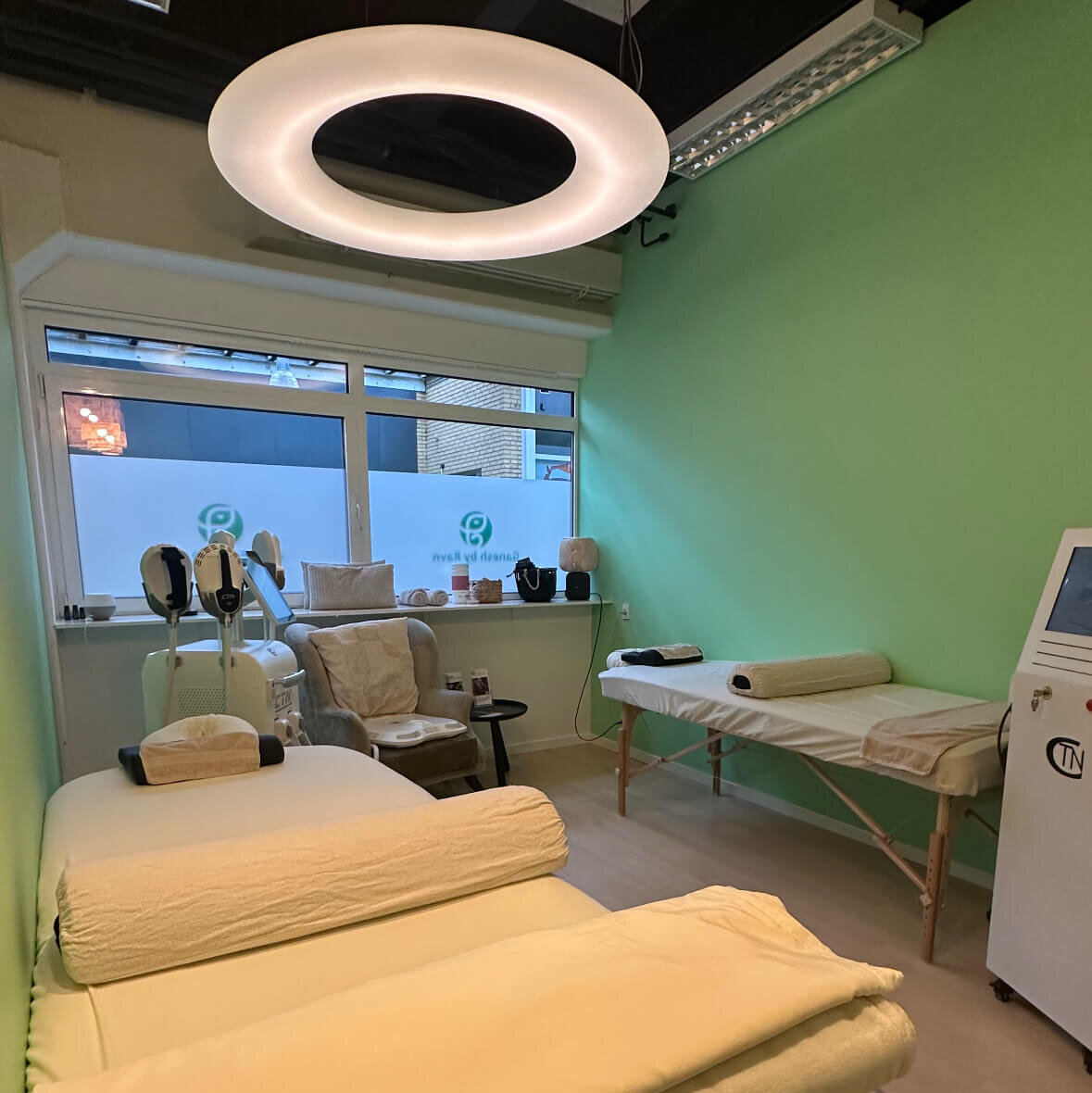 Behandlinger som infrarød sauna, lysterapi, lipolaser, kompressionsmassage, VacuFitness og infrarød varmemadras tilpasses altid individuelt efter dit helbred.